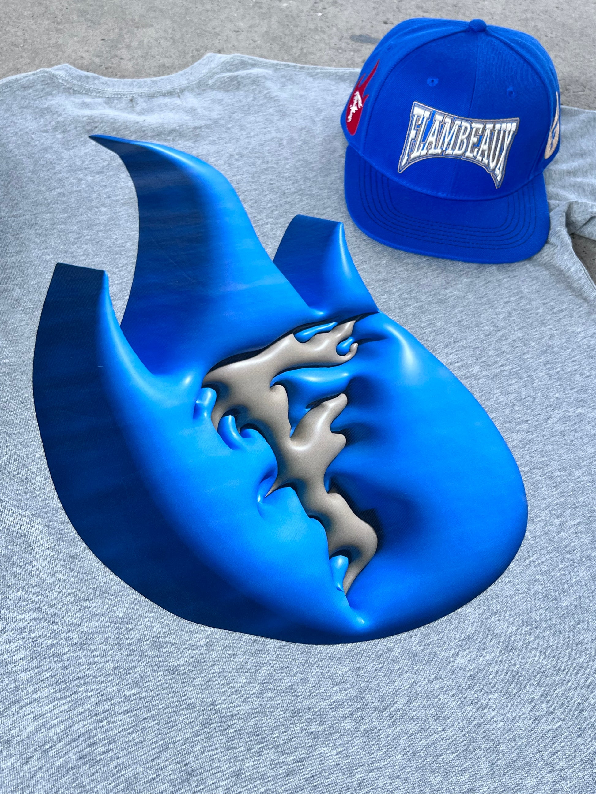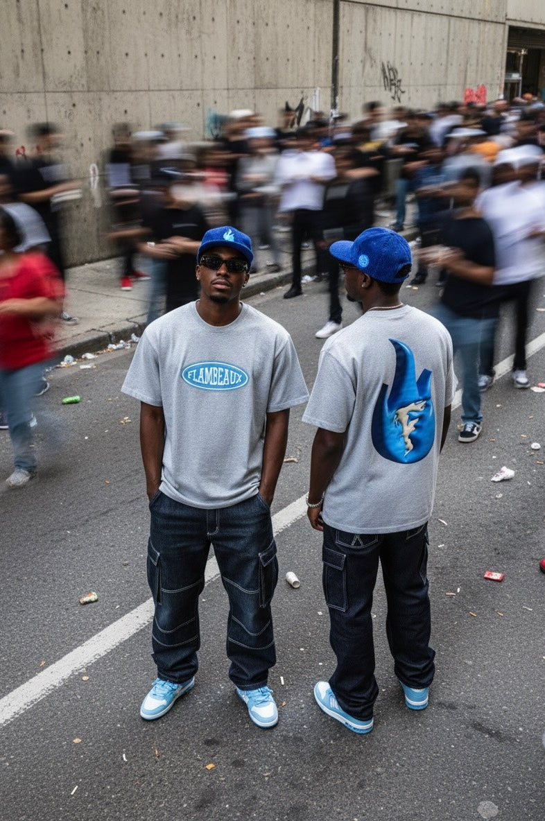 Classic Flame Tee- Heather Grey/Blue